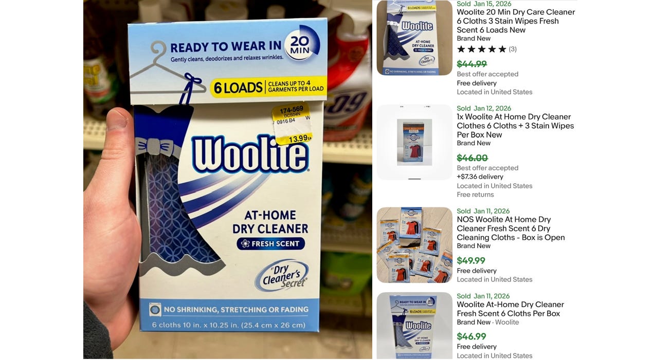This specific version of Woolite’s at-home dry cleaning product has been discontinued for quite some time but as you can see, there’s still strong demand for it.
