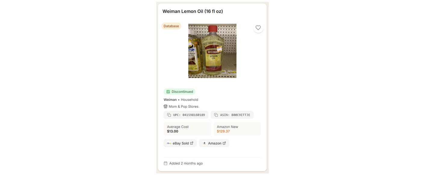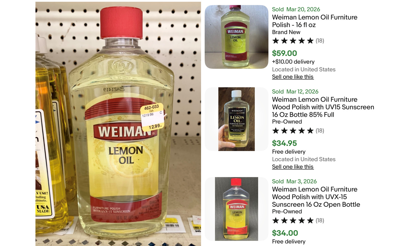 Products like the Weiman Lemon Oil are in the database. If you’re a paid newsletter subscriber, you already have access. Sign up here: